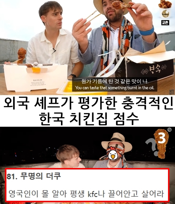외국 셰프가 평가한 한국 치킨집 점수 이 치킨을 최악이라 하네 맛알못인듯 ㄷㄷㄷ