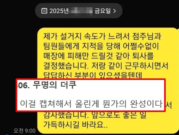 Read More설거지 속도가 느려 그만둔 알바생이 보내온 카톡